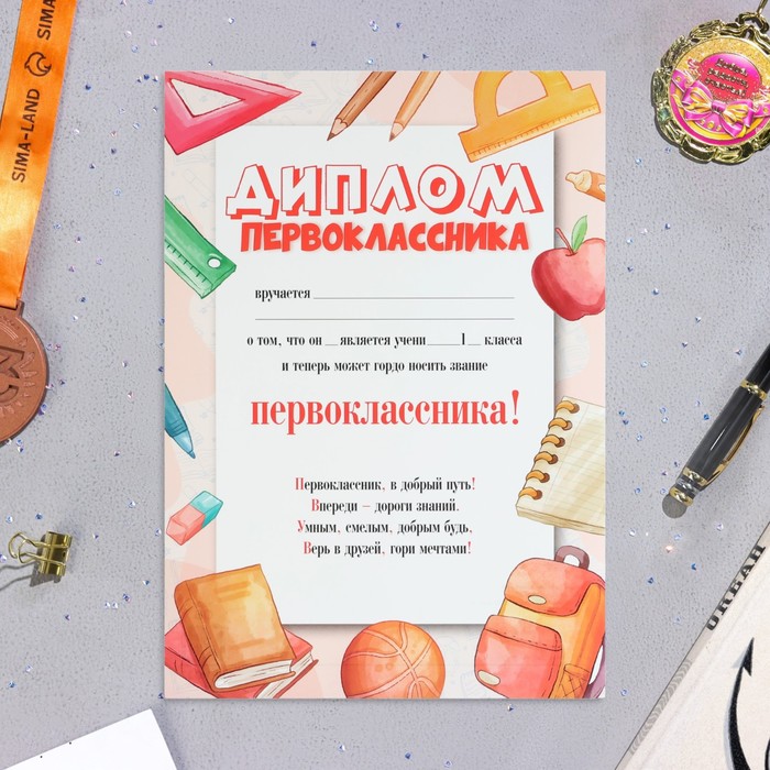 Диплом "Первокласснику!" канцелярия, бумага, А4