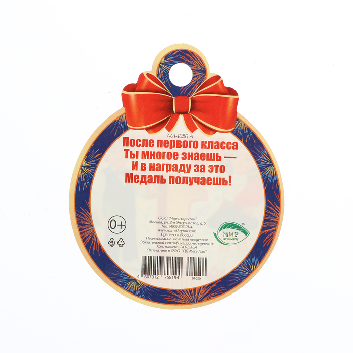 Свидетельство "Первокласснику!" канцелярия, бумага, А4