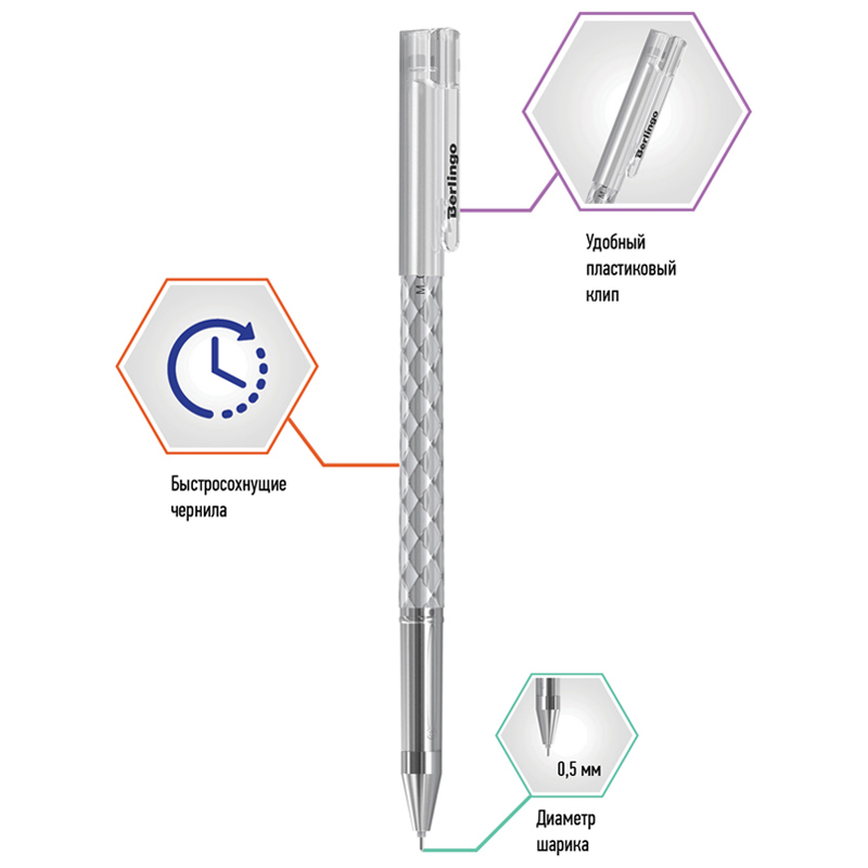 Гелевая ручка Berlingo "Moonlight" выполнена в изящном круглом корпусе с оригинальной отделкой золотой и серебристой фольгой. Стержень украшен в цвет отделки корпуса, что в комплексе дает уникальное дизайнерское решение. Поставляется в коробочках по 12 штук: 6 золотых и 6 серебряных. Диаметр пишущего узла составляет 0,5 мм, благодаря чему получается тонкая, аккуратная линия.