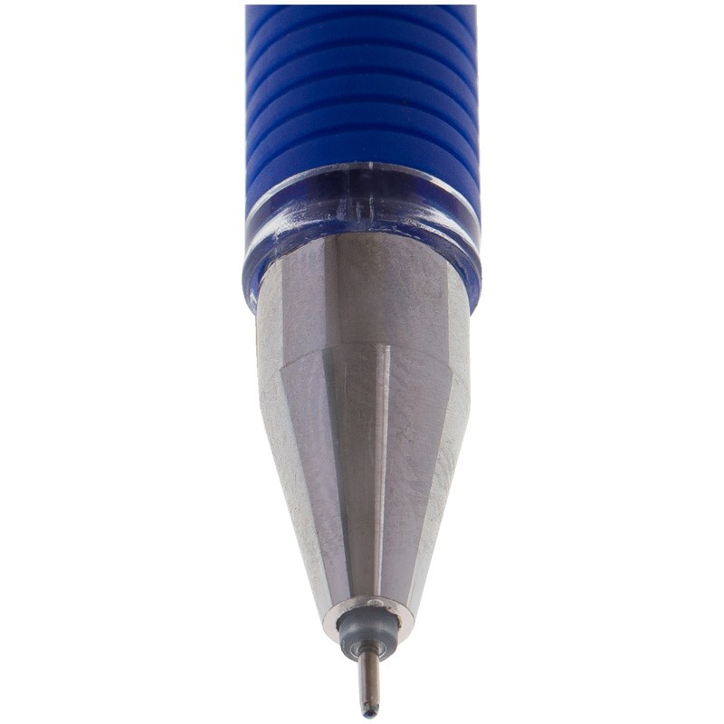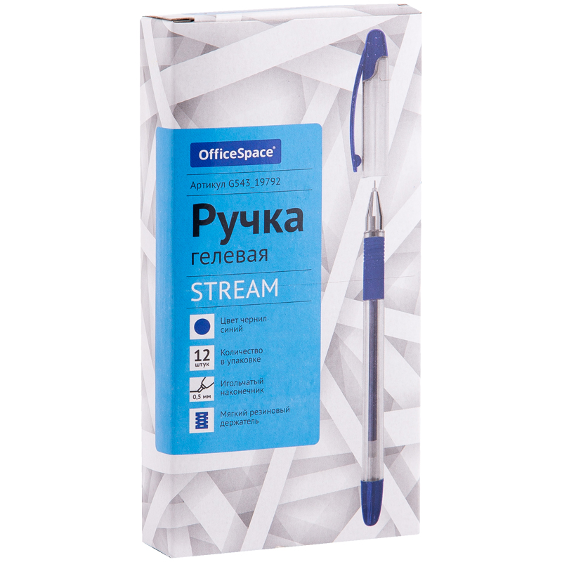 Гелевая ручка с колпачком, пластиковый прозрачный корпус, мягкий резиновый грип для комфортного письма. Диаметр пишущего узла - 0,5 мм, цвет чернил - синий. Код сменного стержня - 265293.
