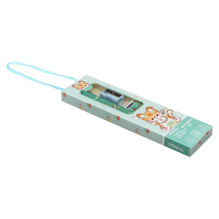 Набор канцелярский Calligrata 9 предметов, 4 чернографитных карандаша, точилка, ластик, линейка, ручка, насадка-тренажер, голубой