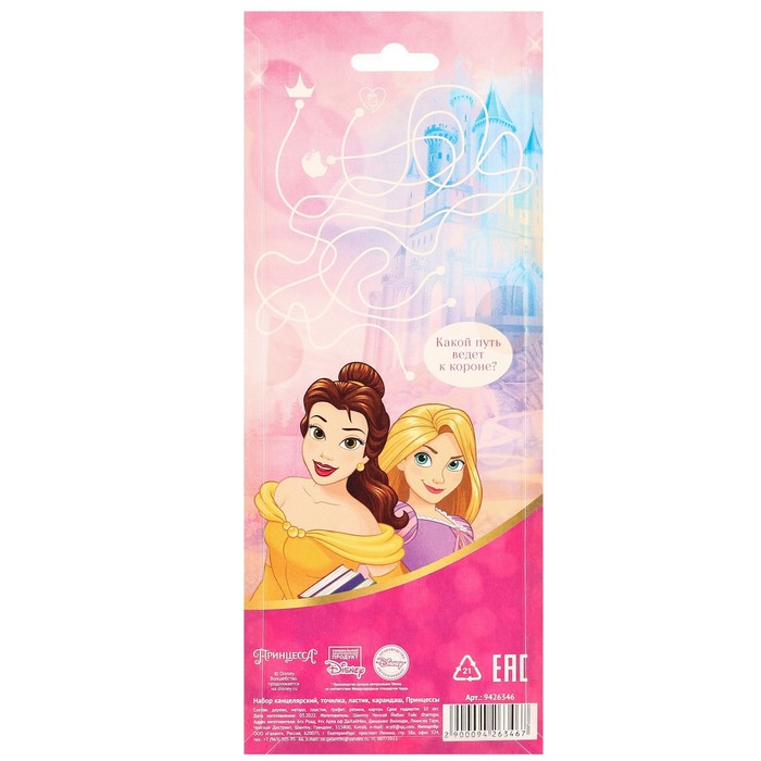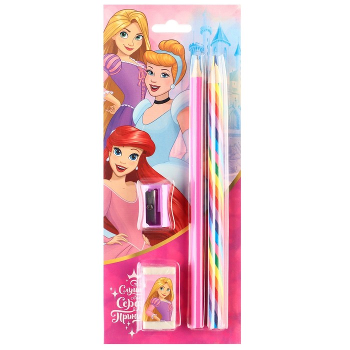 Набор канцелярский Calligrata 9 предметов, 4 чернографитных карандаша, точилка, ластик, линейка, ручка, насадка-тренажер, розовый