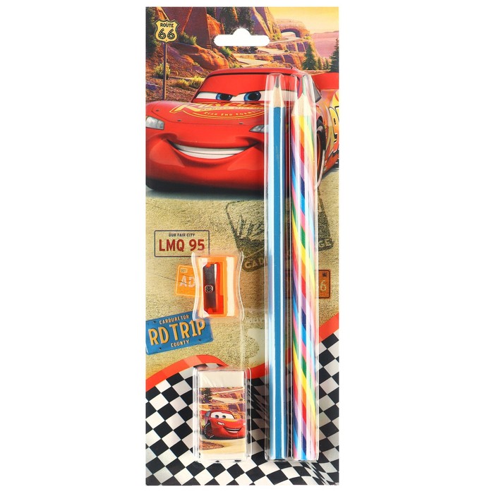 Набор канцелярский Calligrata 9 предметов, 4 чернографитных карандаша, точилка, ластик, линейка, ручка, насадка-тренажер, голубой