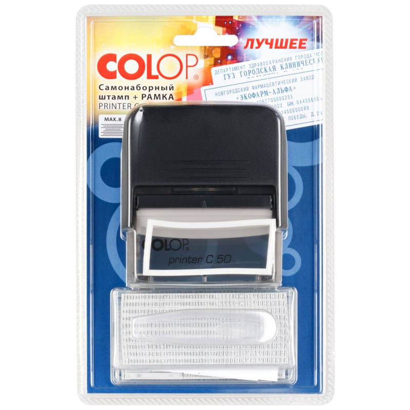 Штамп самонаборный автоматический пластик. 8 строк, с рамкой 6 строк 30х69 мм кассы А, B,<br/>корпус черный, PRINTER С 50 SET-F black