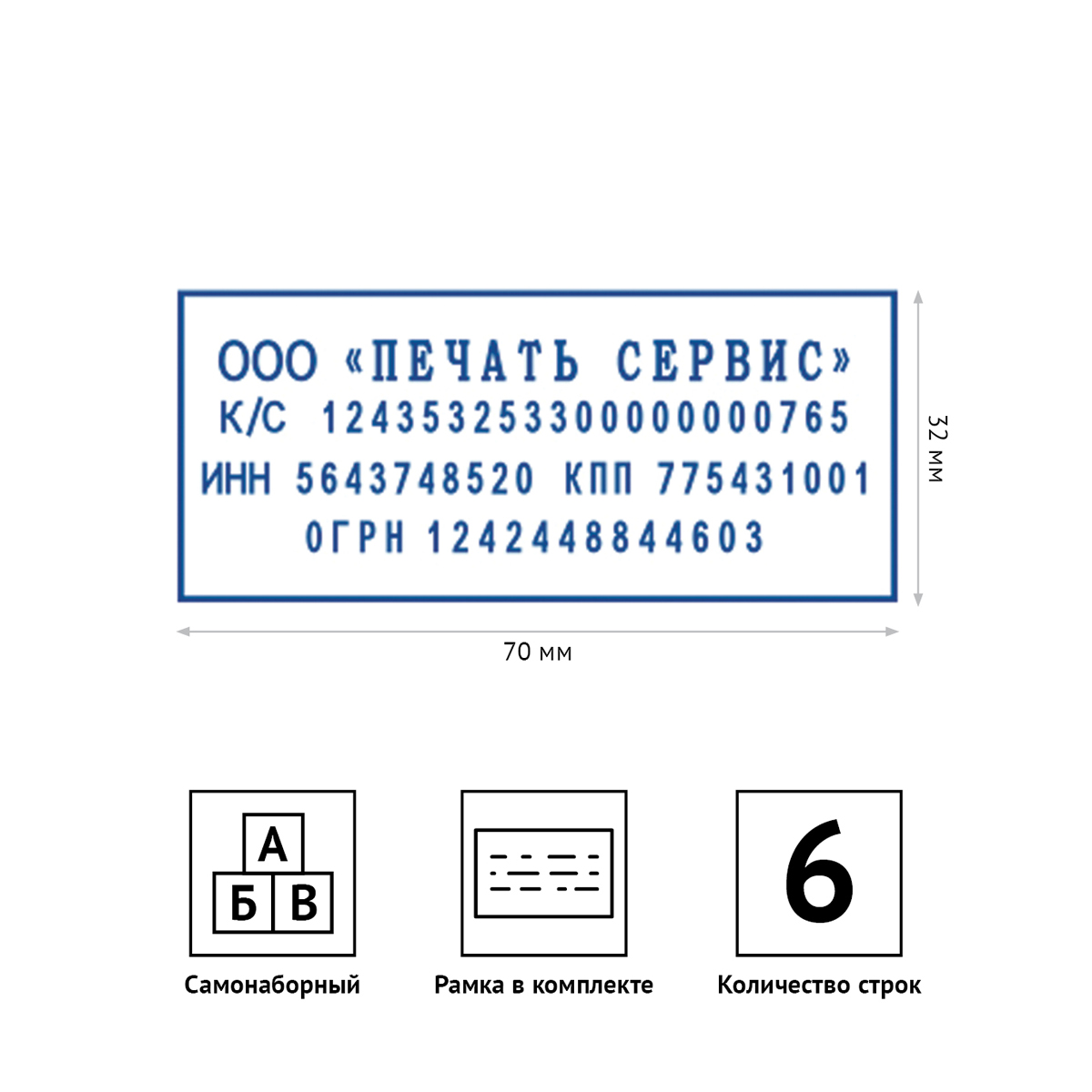• Размер оттиска: 70*32 мм;