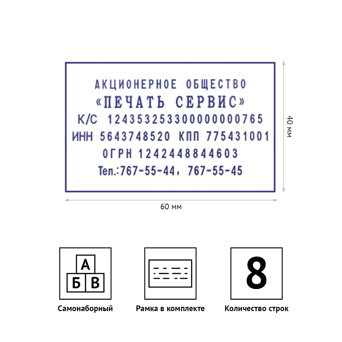 • Размер оттиска: 60*40 мм;