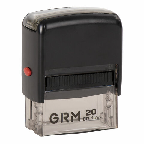 Штамп самонаборный 4-строчный, оттиск 38х14 мм, синий, без рамки, GRM 20, КАССА В КОМПЛЕКТЕ, 116000010
