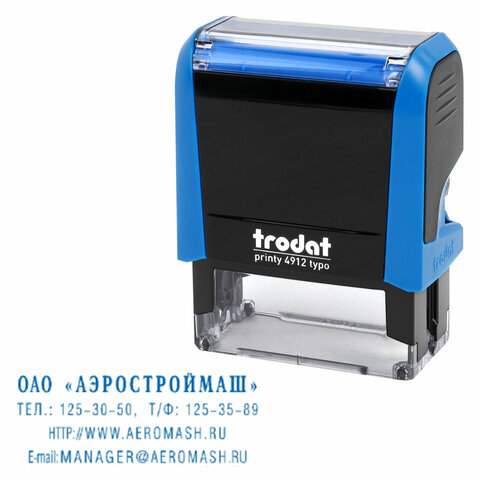 Штамп самонаборный 4-стр., 47х18 мм, синий, TRODAT 4912P4/DB, корпус КРАСНЫЙ, КАССЫ В КОМПЛЕКТЕ, 43218