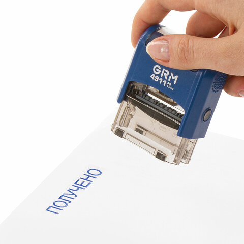 Штамп GRM 4911_Р3 с клише "ПОЛУЧЕНО" применяется в бухгалтерии, на складе, в офисе. Надежная конструкция обеспечивает до 50 000 оттисков.