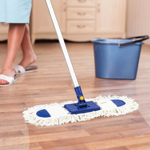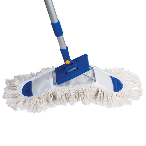 Швабра-рамка предназначена для проведения сухой и влажной уборки помещения. Влажная уборка должна производиться слегка влажным ( не мокрым МОПом, так как он будет тяжелый и не удобным в работе ). Держатель складывается, позволяя надевать и снимать насадку. Алюминиевая телескопическая ручка, шарнирное соединение обеспечивают удобство при использовании и помогают пробраться в дальние уголки и труднодоступные места квартиры, чтобы очистить их от пыли и грязи. Крепление черенка - резьба 1,6 см. Насадка выполнена из хлопка, держатель - из металла и пластика. Длина телескопической ручки из алюминия - 75-130 см. Длина рабочей части - 40х10 см. Вес - 626 г.