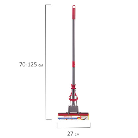 Самоотжимная швабра-бабочка позволяет регулировать влажность губки. Является идеальным вариантом для уборки всех видов полов. Нет ручного отжима, возможность менять насадки, что делает агрегат универсальным в плане мытья плинтусов и плоских поверхностей, телескопические ручки помогают пробраться в дальние уголки и труднодоступные места квартиры, чтобы очистить их от пыли и грязи. Крепление черенка - встроенное. Насадка выполнена из износостойкого PVA, держатель - из пластика. Длина телескопической ручки из алюминия - 70-125 см. Длина рабочей части - 27х6 см. Вес - 575 г.