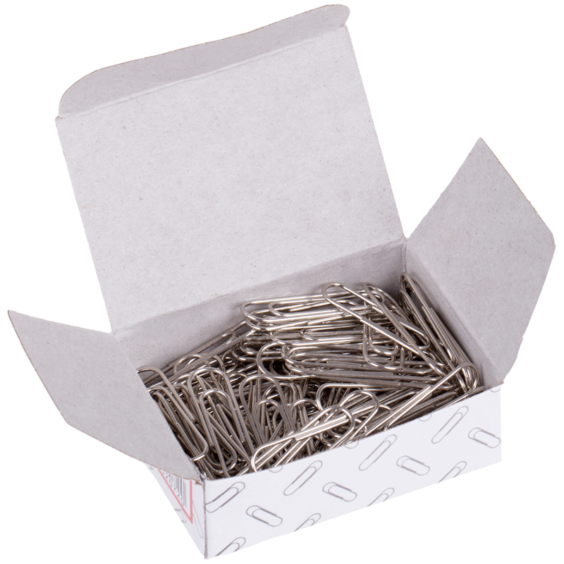 Никелированные канцелярские скрепки овальной формы. Отличный инструмент для работы с документами, не пачкают и не деформируют бумагу, не ржавеют, надежно скрепляют документы. Упакованы в картонную коробку по 100 шт. Длина - 28 мм.