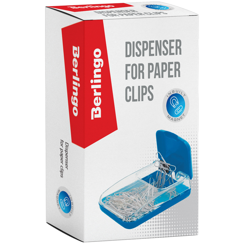 Удобный магнитный диспенсер для скрепок с крышкой. Материал - прозрачный пластик. Классические офисные цвета в ассортименте. Поставляется без скрепок. Индивидуальная упаковка в картонную коробочку.