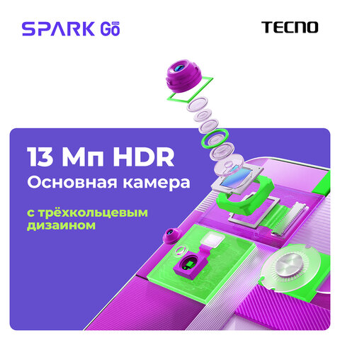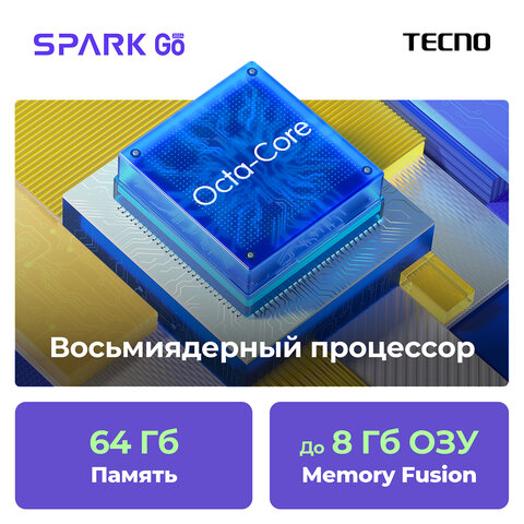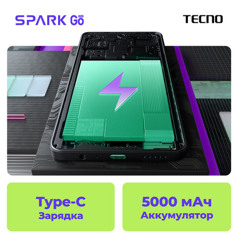 Обновленный смартфон Tecno Spark Go с оптимальными характеристиками для работы базовых программ и приложений.