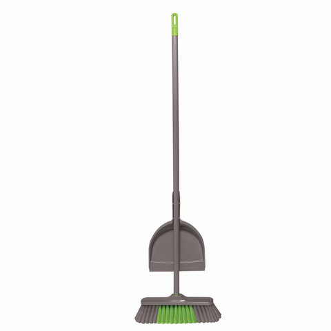 Комплект щетки с рукояткой и совком. Система "клик" позволяет крепить совок на рукоятке и облегчает хранение набора. На конце рукоятки расположена петля, на которой можно подвесить весь комплект на крючке. Привлекательные цвета щетины и пластика.