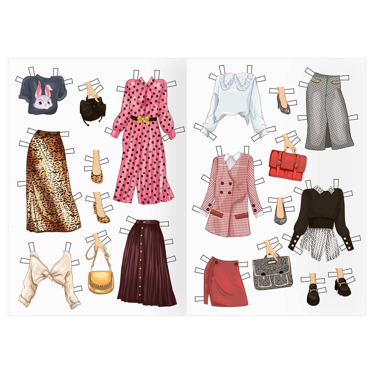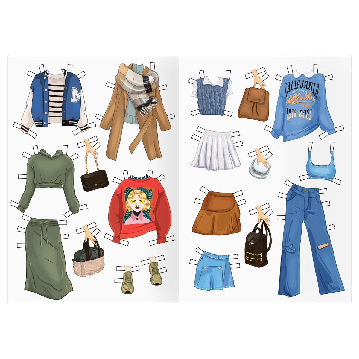 В гардеробе более 60 вещей, которые можно комбинировать друг с другом, получая красивые образы. Коллекция включает одежду, подходящую для любого случая и времени года: от пальто и шуб, до купальников и шляп. Дополнить образ можно обувью, подходящей по стилю, и аксессуарами.