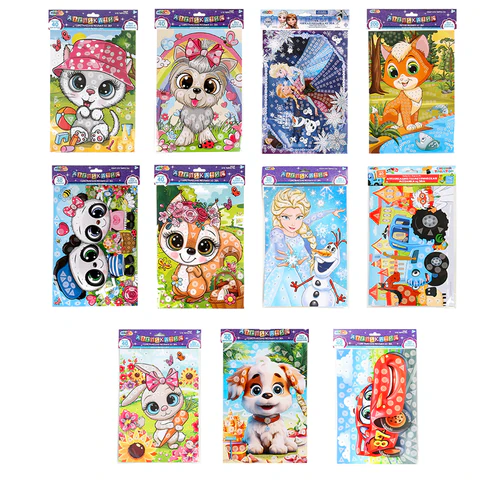 Алмазная мозаика детская АССОРТИ 10 видов, 17х23 см, на картоне, МУЛЬТИ АРТ, 5940