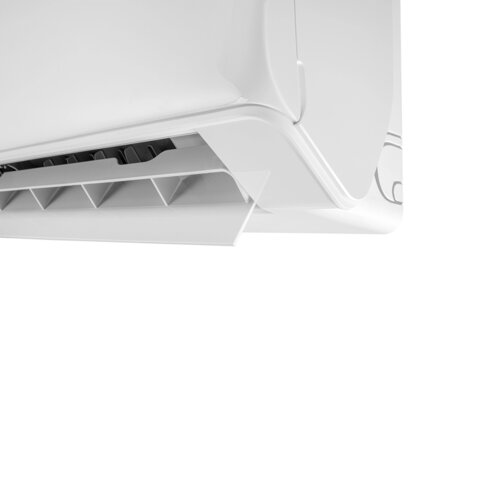 Возможность регулировки широких горизонтальных и вертикальных жалюзи с помощью русифицированного пульта ДУ позволяет создавать комфортный угол обдува, предотвращающий продувание.