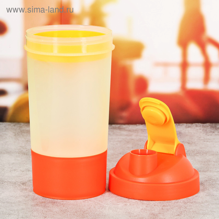 Шейкер спортивный с чашей под протеин, бело-оранжевый, 500 мл