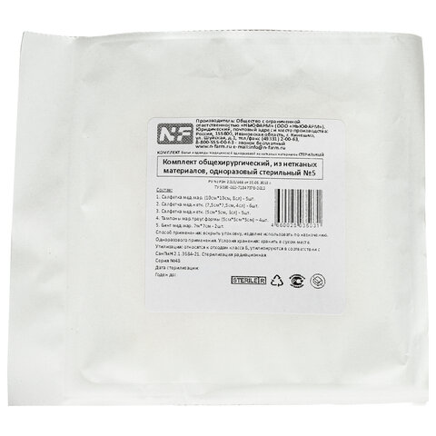 Состав набора: марлевая салфетка 10х10 см 8-слойная, плотность - 36 г/м2, 5 шт.;