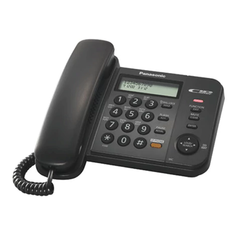 Телефон PANASONIC KX-TS2356RUB, черный, память 50 номеров, АОН, ЖК-дисплей с часами, тональный/импульсный режим