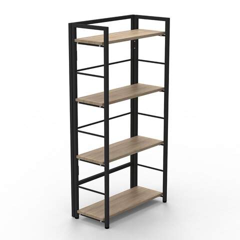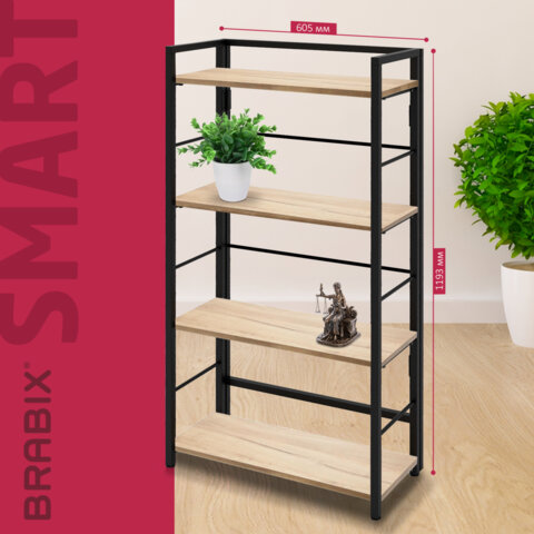 Стеллаж BRABIX "Smart SH-005", 605х290х1193 мм, ЛОФТ, прямой, складной, металл/ЛДСП ясень, каркас черный, 641869