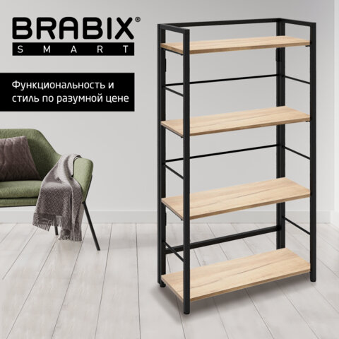 Стеллаж BRABIX "SMART SH-004", 790х360х1950 мм, ЛОФТ, 5 полок, металл/ЛДСП ясень шимо светлый, каркас черный, 641943