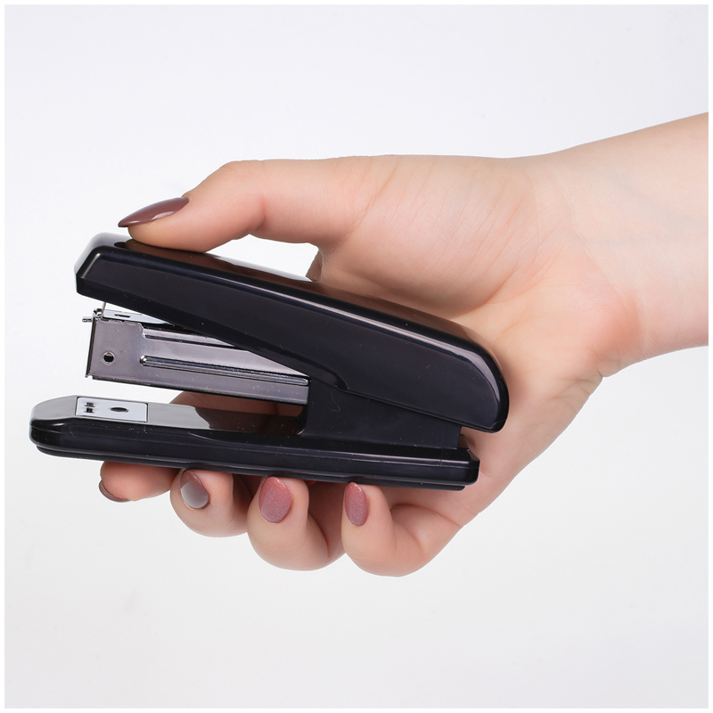 Изящный и компактный степлер для несложных операций. Способен скреплять до 25 листов (бумага плотностью 80 гр/м.кв.) Надежный и компактный степлер, легкий в использовании. Стальной механизм для загрузки скоб.