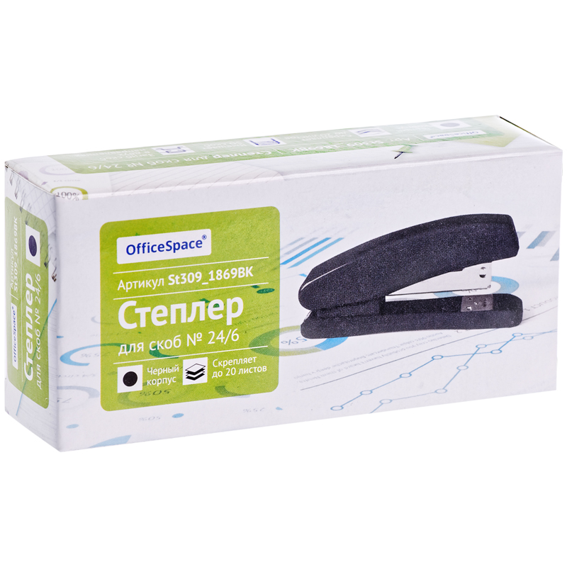 Степлер пластиковый №24, черный, пробивная мощность - 20 листов