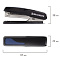 Способен скрепить до 20 листов. Подходящий размер скоб №10. Глубина закладки бумаги - 55 мм. Вид сшивания: закрытый. Данная модель может выступать в качестве антистеплера, позволяющего разжать закрепленные скобы более качественно, не нанося повреждений ни материалу, ни кончикам пальцев. За счет компактных размеров не займет на рабочем столе много места, а классическое сочетание черно-синих цветов и дизайн будут отлично дополнять любой интерьер.