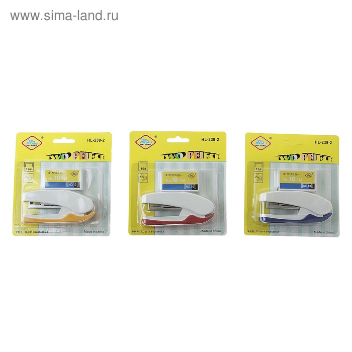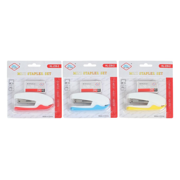 Степлер плаер №10 до 20 листов, скобы 10, для сшивания на весу, стальной, МИКС