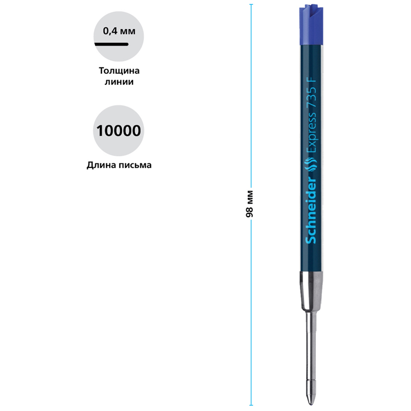 Износостойкий стержень формата G2 из нержавеющей стали для автоматических ручек Schneider серий Fave, Suprimo, K20 Icy Colours, Haptify, Slider Rave, Reco, K 3 Biosafe, Gelion+ и автоматических шариковых ручек других производителей. Толщина линии письма 0.4 мм. Быстросохнущие, свето- и водоустойчивые чернила соответствуют международному стандарту качества ISO 12757-2 и отлично подходят для заполнения и подписи документов. Невероятная длина письма до 10 000 метров!
