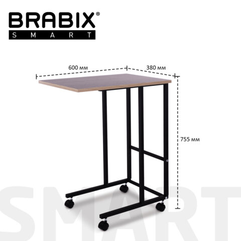 Мебель серии "Smart" бренда BRABIX - это "умная" функциональная мебель в стиле Лофт. Сочетает в себе актуальный дизайн, высокое качество и надежность. Мобильный за счет роликовых опор. Может использоваться как для ноутбука, так и для бытовых целей.