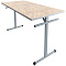 Столешница обеденного стола изготавливается ДСП толщиной 26мм с покрытием износостойким пластиком. Торцы у столешницы закрываются ударопрочной кромкой ПВХ толщиной 2мм. Металлический каркас стола выполнен из металлического профиля сечением 25х25 и 25х40мм с толщиной стенок не менее 1,2мм и покрыт порошковой краской, стойкой к химическим и механическим воздействиям. Опоры стола соединяются между собой траверсой, выполненной из металлического профиля сечением 25х40мм, что придает конструкции стола дополнительную жесткость. На свободных концах труб установлены заглушки из ударопрочных полимеров. Каркас стола имеет полимерные подпятники, предотвращающие повреждение напольного покрытия. Крепление столешницы – болты с шестигранной головкой и футорки.