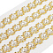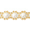 Ленты из страз шириной 15 мм имитируют жемчужины, украшенные вокруг золотистыми стразами. В упаковке содержится 4 ленты длиной 24,3 см, которые помогут изысканно и благородно украсить любые изделия.