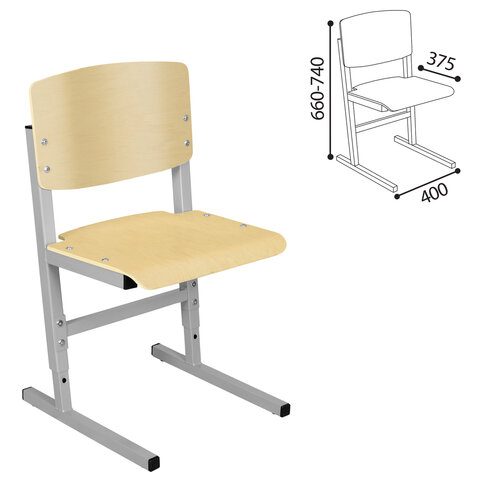 Стул ученический регулируемый ПИФАГОР SC-3, 380х380х750-830 мм, рост 5-7 (4-6) (160-190 см), серый каркас, фанера, 533350