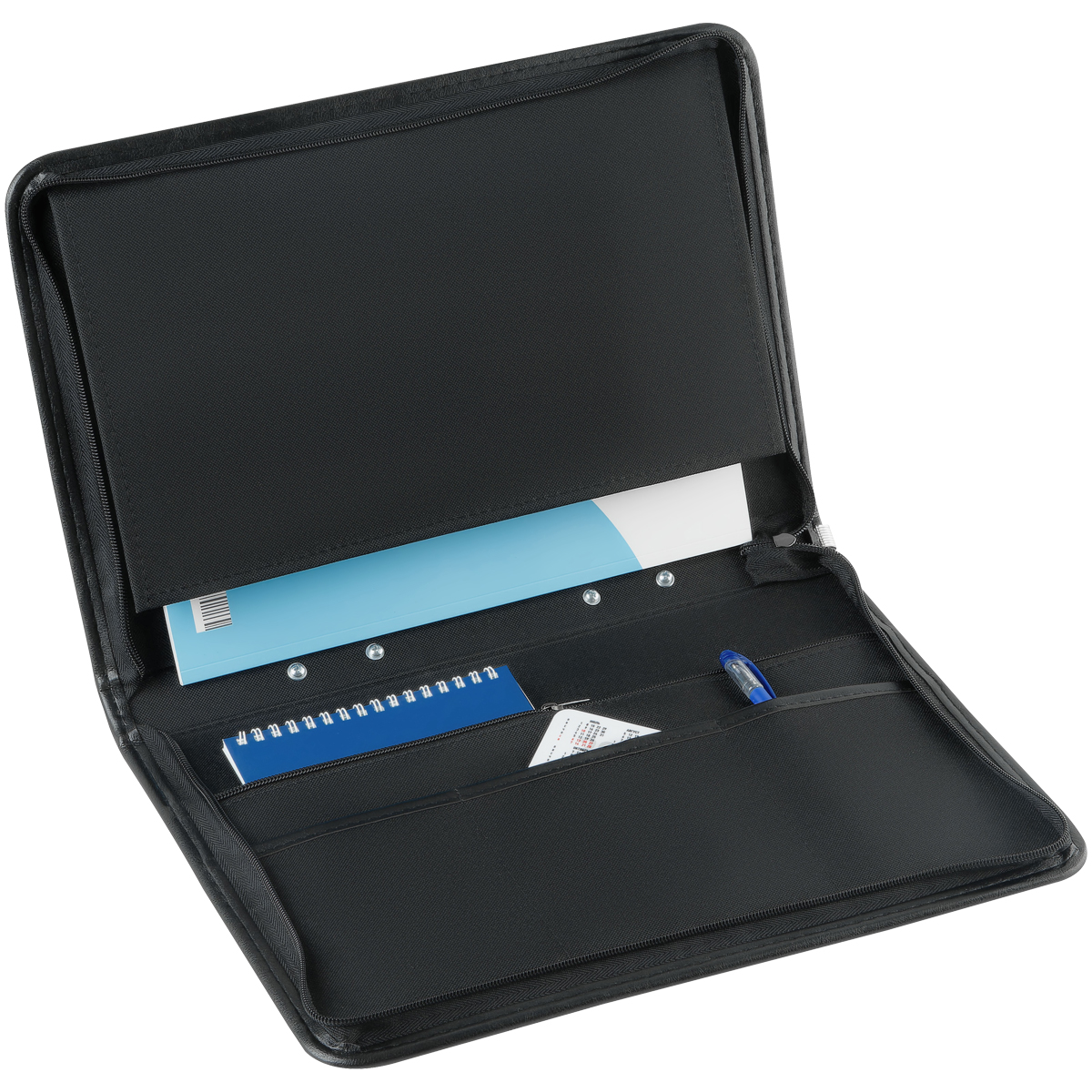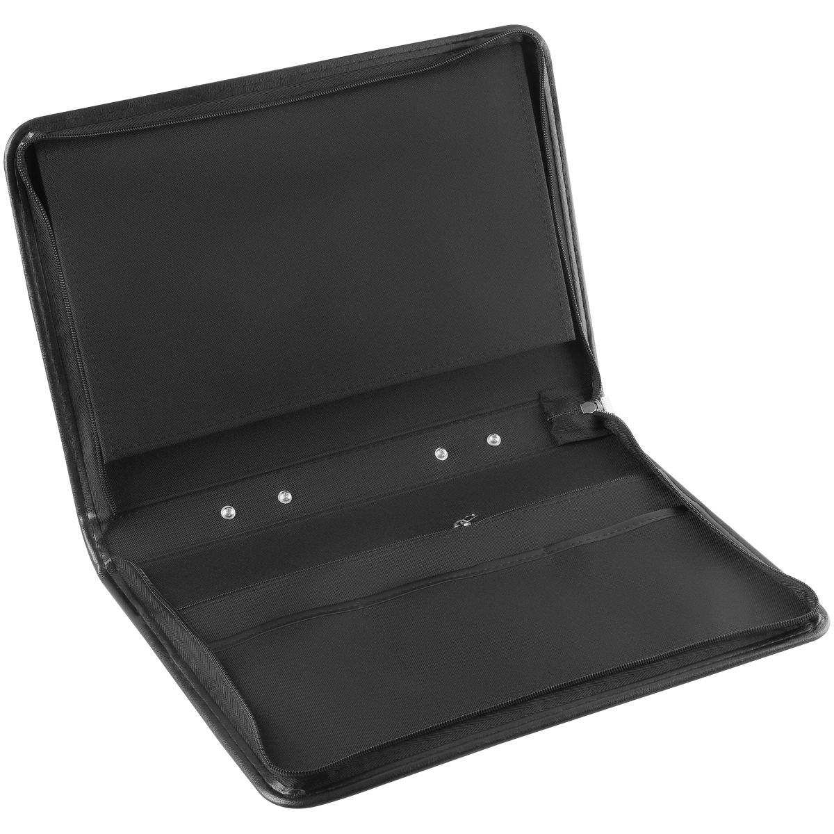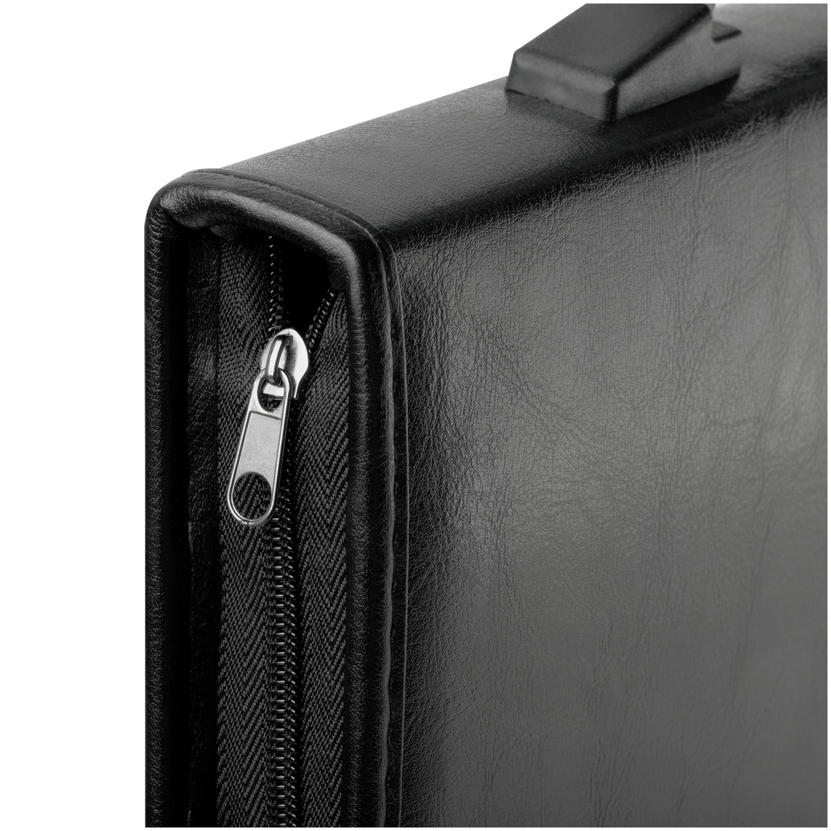Деловая папка для документов формата А4 из искусственной кожи. Папка создана в лаконичном дизайне со складывающейся ручкой-трансформер, закрывается на молнию. Внутри два кармана для хранения документов формата А4, три отделения для хранения визиток. Размер 350х250мм.