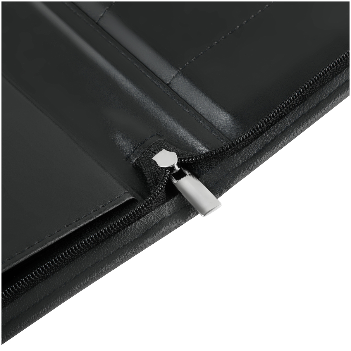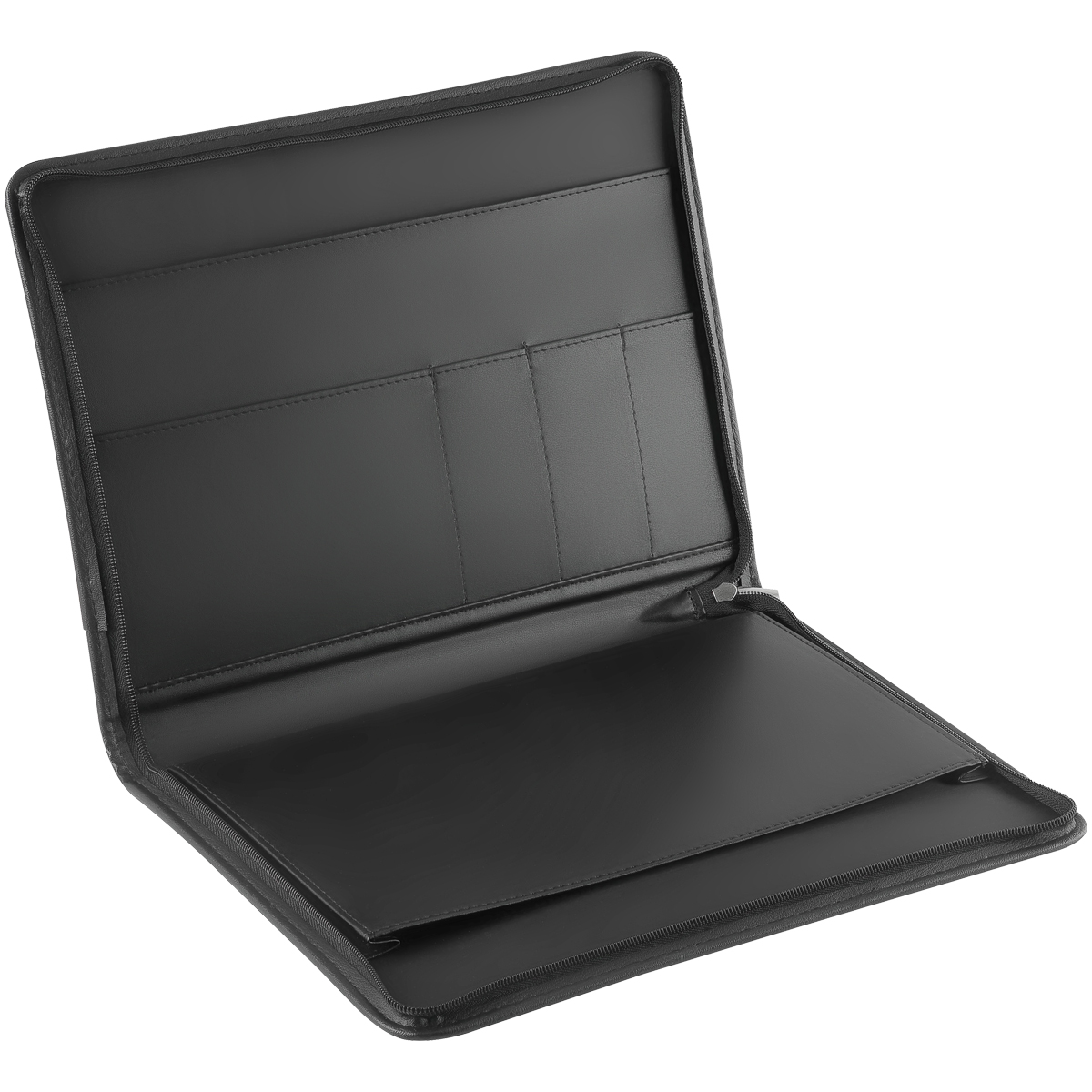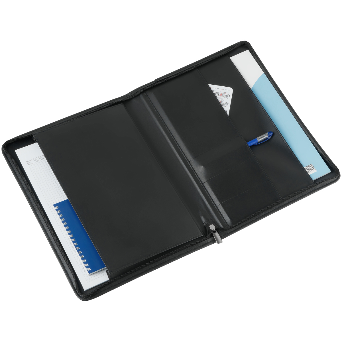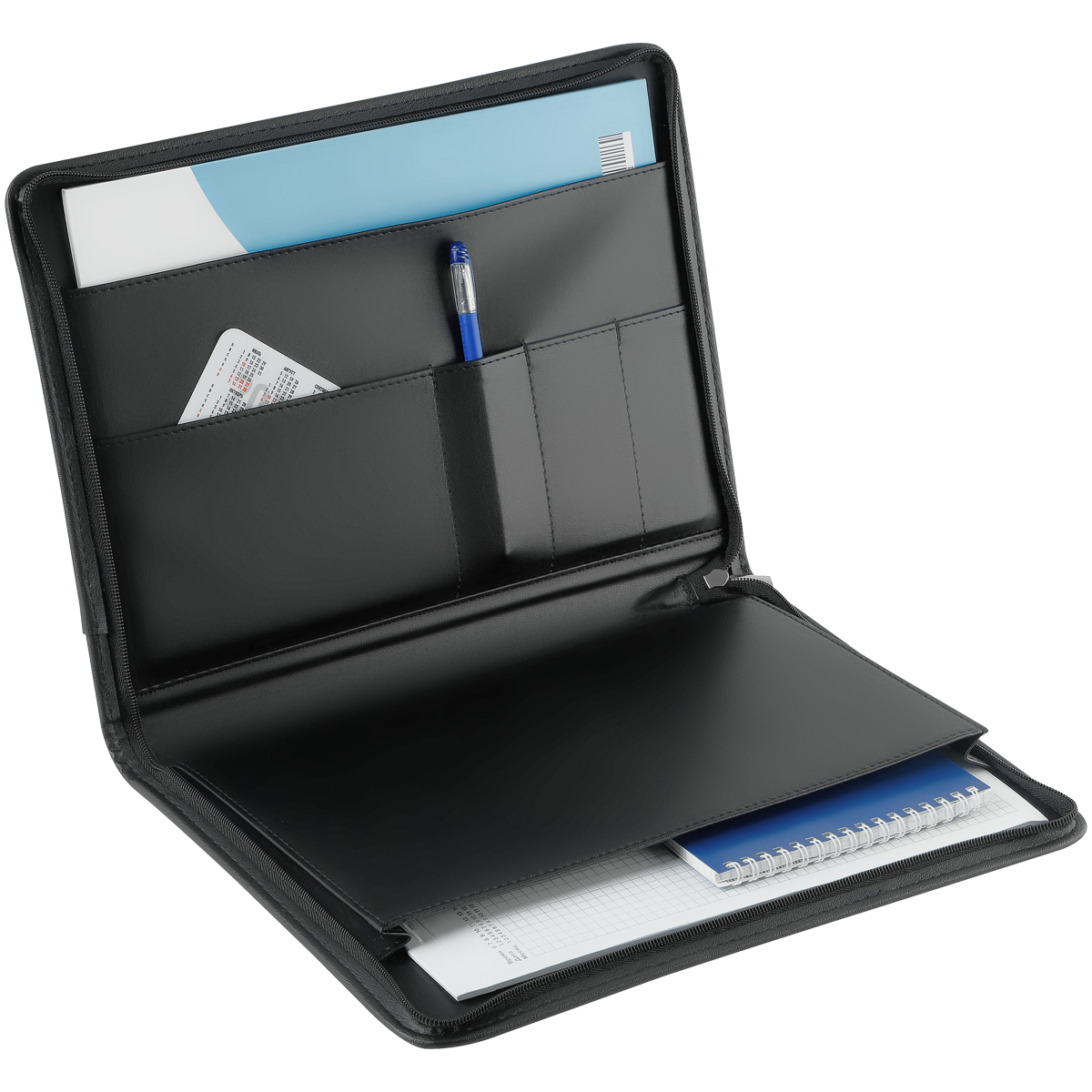 Деловая папка для документов формата А4 из искусственной кожи. Папка создана в лаконичном дизайне без ручек, закрывается на молнию. Внутри отделения для бумаг, карманы для визиток. Размер 340х270мм.