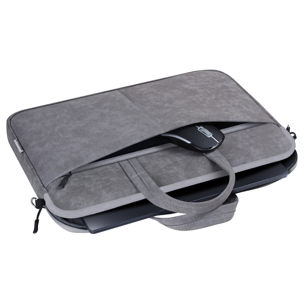 Сумка для ноутбука 15,6" Först "Suede Style", полиуретан, серый, мягкий подклад, 2 отделения, молния с 3-х сторон
