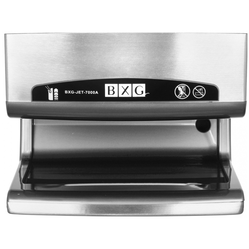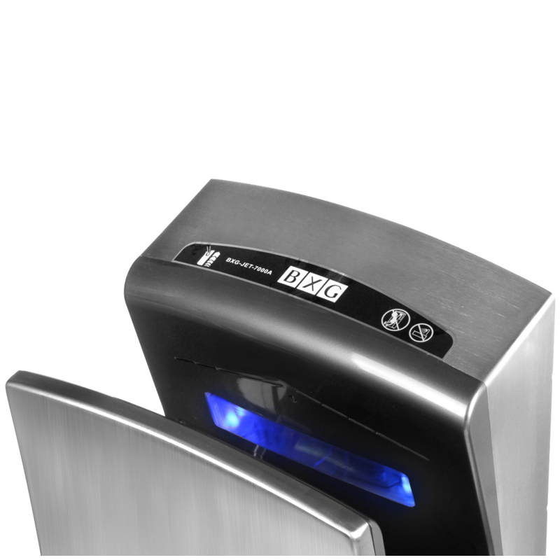 Сушилка для рук BXG-JET 7000A не имеет аналогов. Руки становятся сухими за 7 секунд. Такой результат достигается благодаря высокой скорости воздушного потока и уникальной технологии подачи воздуха. Воздух подается из трехсот форсунок со скоростью 95 м/с, под определенным углом так, что он фактически сдувает капли воды с рук за считанные секунды! Высокоскоростная электросушилка для рук BXG-JET 7000A имеет знак «Зеленый щит» за безопасность и гигиеничность. Бесконтактное управление (благодаря инфракрасным датчикам), исключает контакт с поверхностью прибора и, как следствие, снижается уровень возможности передачи микробов и бактерий. Кроме того, возможные зоны контакта с руками и зоны, на которые попадает влага «сдутая» с рук, покрыты специальным антибактериальным покрытием, активные элементы которого уничтожают до 99% бактерий, препятствуют возникновению грибков и плесени. Встроенные, мембранный и угольный, фильтры обеспечивают тройную очистку воздуха, который подается для обдува рук.<br/>Электросушилка BXG-JET 7000A имеет самый высокий, на сегодняшний день, класс влагозащиты - IPX4 - исключено попадание влаги вовнутрь сушилки со всех сторон. Вероятность короткого замыкания и/или удара током исключается. Корпус сушилки выполнен из высокопрочных материалов, обеспечивающих высокую защиту от повреждения и вандализма. Современный эргономичный дизайн, делает сушилку украшением любого интерьера! Устанавливается в помещениях различного назначения. Стильный металлический корпус обладает не только эстетическими свойствами, но и антивандальной защитой.