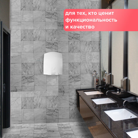 Сушилка для рук ВЫСОКОСКОРОСТНАЯ SONNEN K2022B, 1300Вт, 150м/с, IPX1, 72дБ, белая, пластиковый корпус, 607192