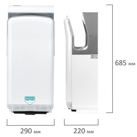 Сушилка для рук ВЫСОКОСКОРОСТНАЯ SONNEN K2022B, 1300Вт, 150м/с, IPX1, 72дБ, белая, пластиковый корпус, 607192