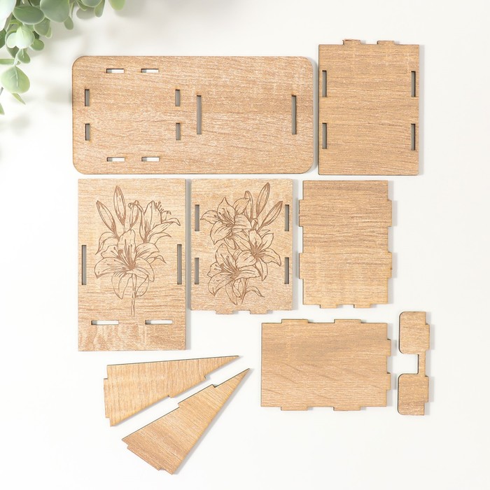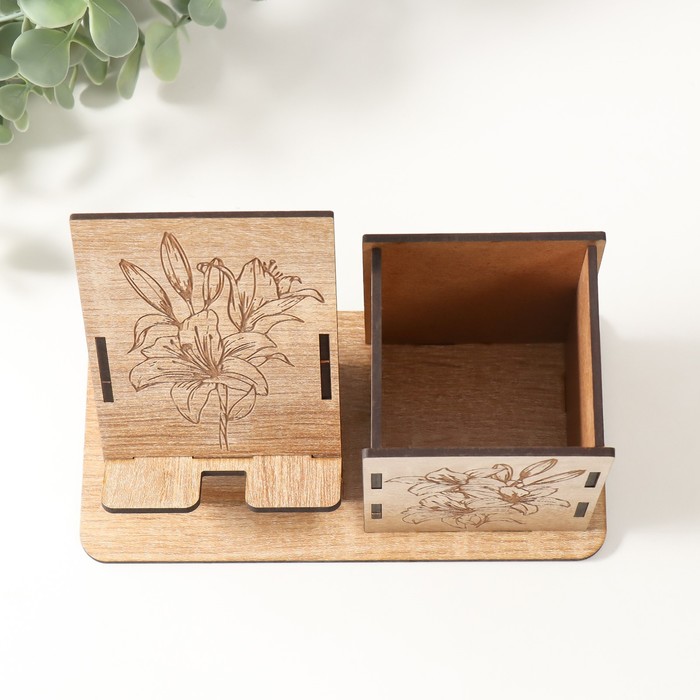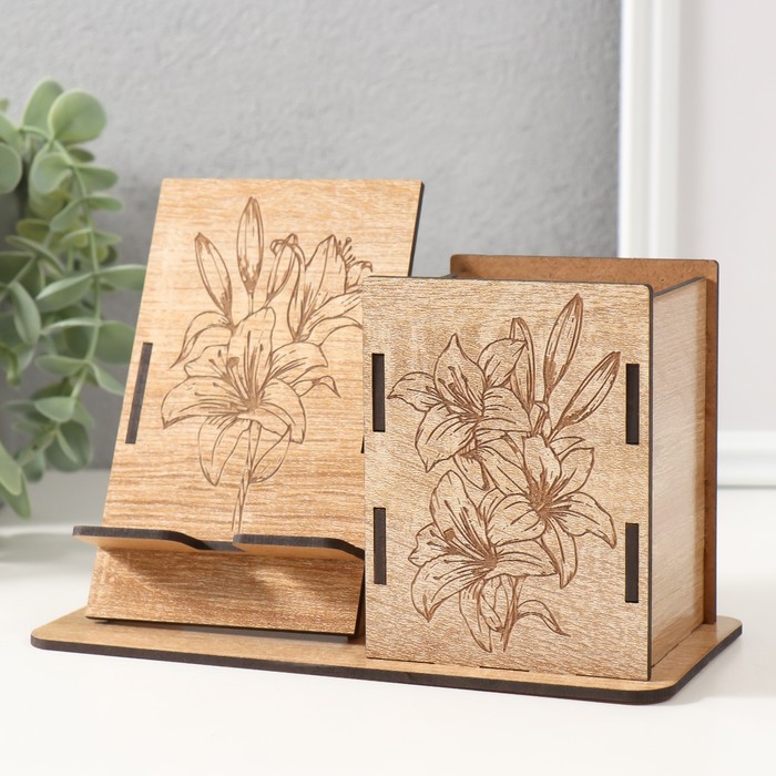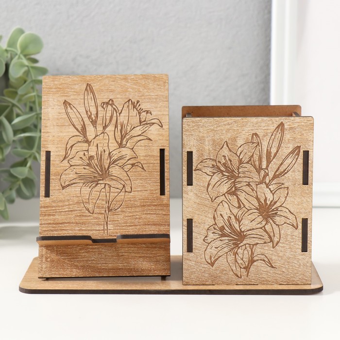 Деревянный органайзер настольный для канцелярии «Цветок», набор 9 деталей, с подставкой под телефон, карандашница, 18×12.5×9 см