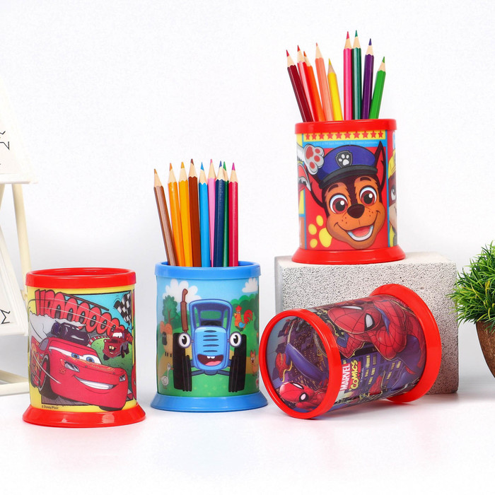 Деревянный органайзер настольный для канцелярии «Котики», набор 9 деталей, с подставкой под телефон, карандашница, 18×12.5×9 см