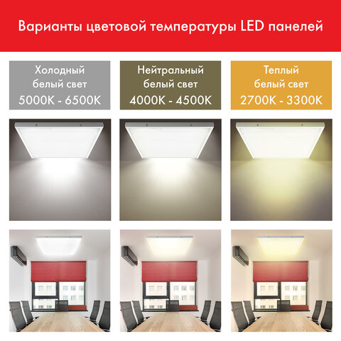 Светильник светодиодный АРМСТРОНГ SONNEN, холодный свет 6500K, 595х595х22, 40Вт, матовый, 237859, 237860