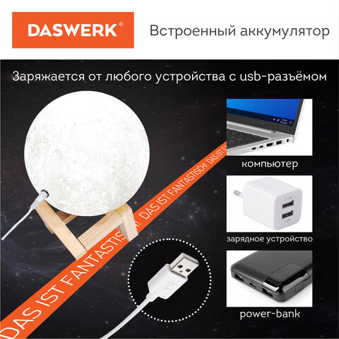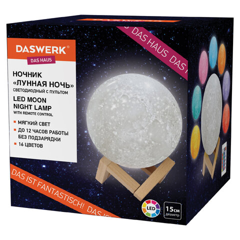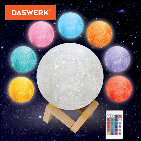 Светильник 3D "Лунная ночь" DASWERK - это уютный ночник, имитирующий поверхность луны, на стильной деревянной подставке. Благодаря мягкому таинственному свечению создает теплую, успокаивающую атмосферу. Прекрасно подходит под любой интерьер.