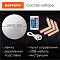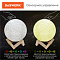 В комплект входит светильник-луна диаметром 15 см, подставка для светильника из натурального дерева, пульт управления, в который уже вставлена батарейка, USB-кабель для зарядки светильника, а также руководство пользователя.