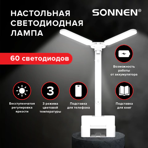 Настольная лампа светильник беспроводная SONNEN PT-301, органайзер, USB, LED, 4 Вт, 3 режима, 238778
