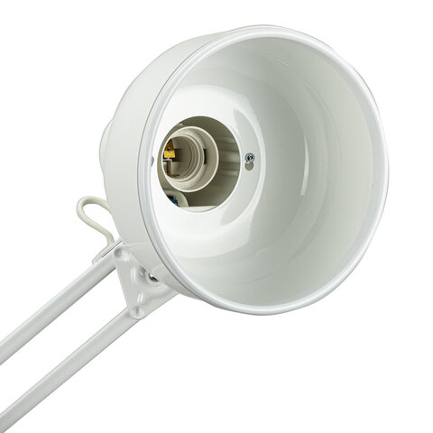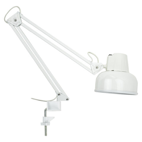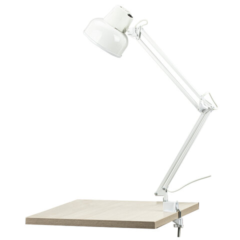 Настольный светильник на струбцине для обычных ламп накаливания мощностью 60 Вт. Подвижная конструкция лампы позволяет выбрать удобное положение и направление света для комфортной работы за столом. Возможна установка на подставке, приобретается отдельно.