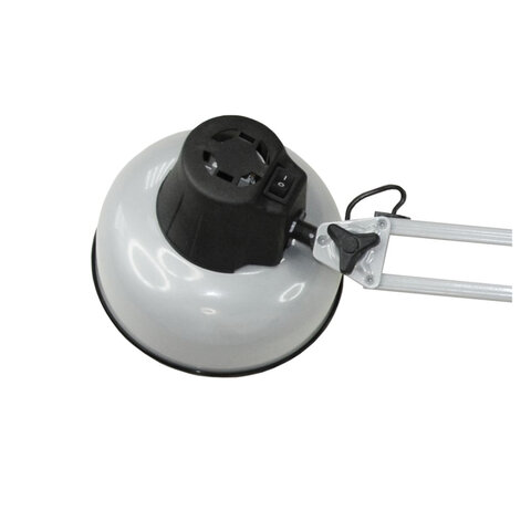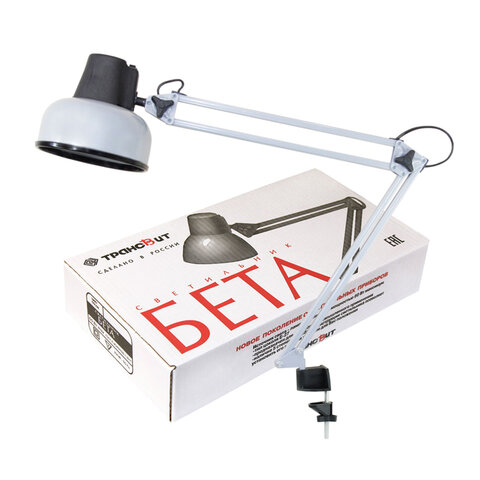 Настольный светильник на струбцине для обычных ламп накаливания мощностью 60 Вт. Подвижная конструкция лампы позволяет выбрать удобное положение и направление света для комфортной работы за столом. Возможна установка на подставке, приобретается отдельно.